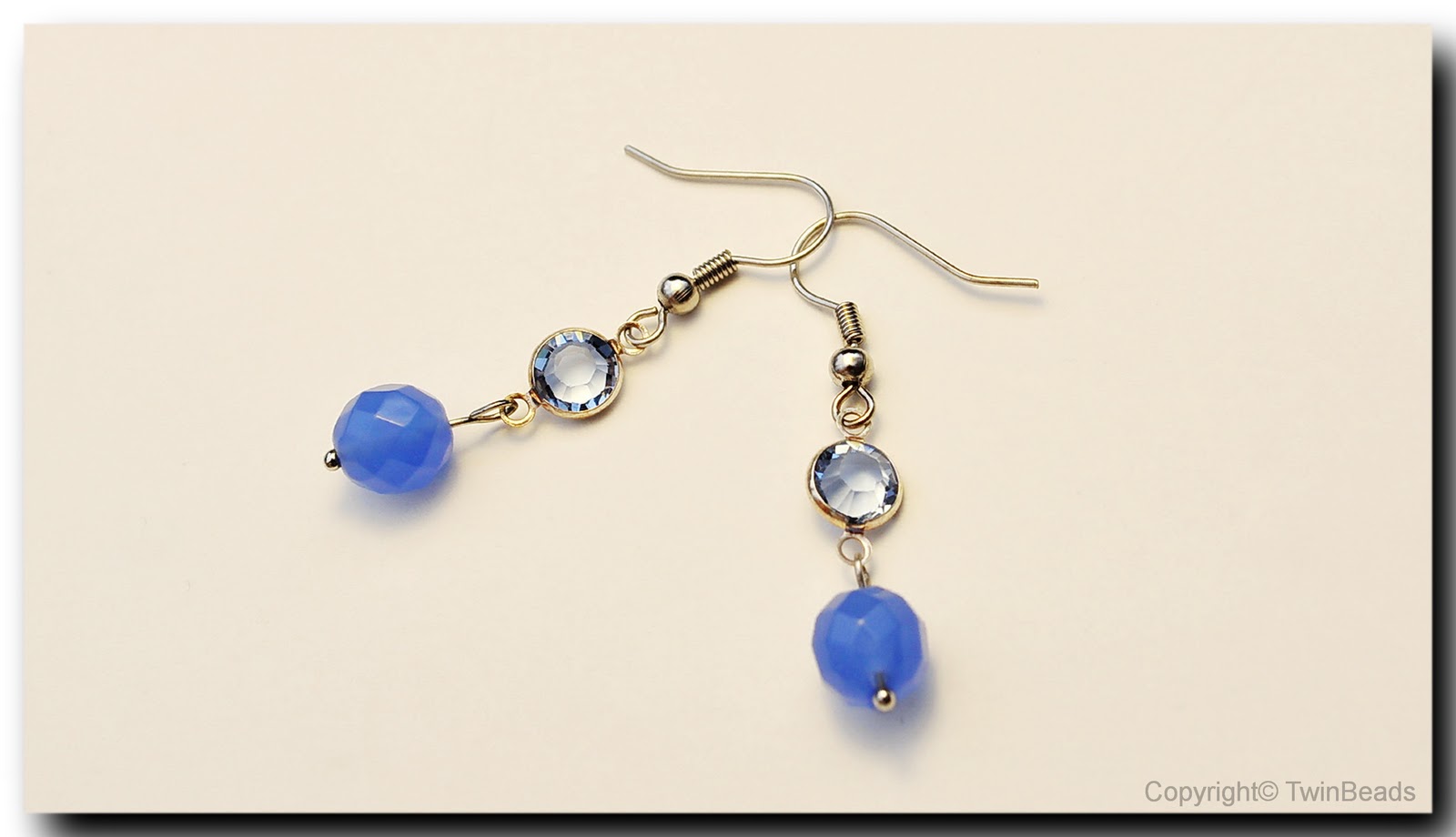 Earrings with blue agate and blue swarovski crystal
